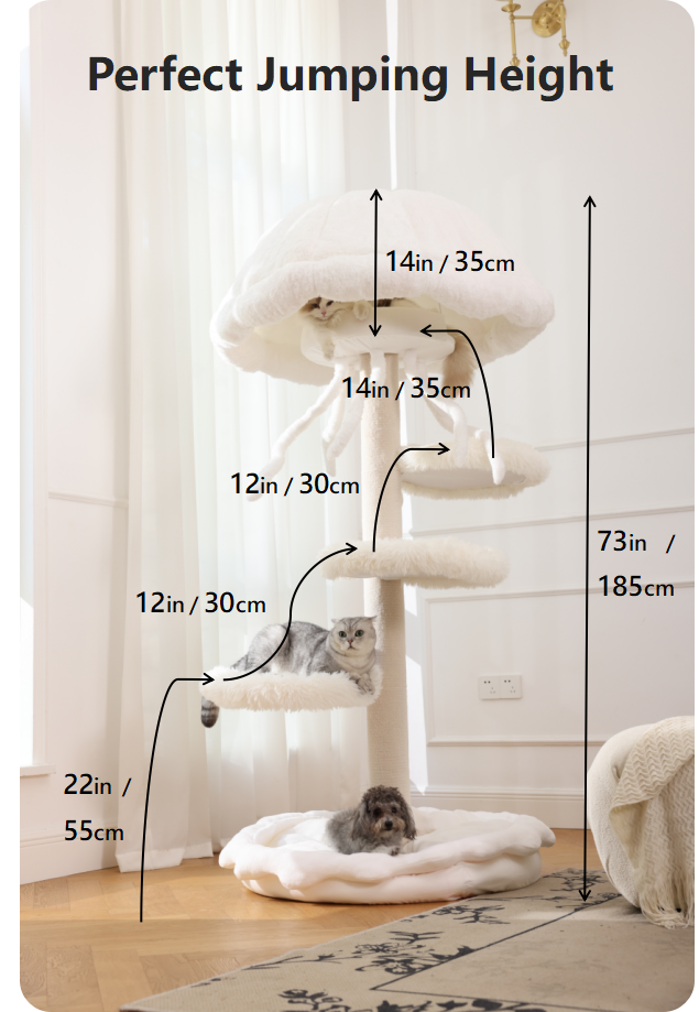 The HaloCat Jellyfish Tree with Ambient Light redefines what a cat tree can be. Inspired by the elegant motion of a jellyfish and designed to complement refined modern interiors, this multi-functional piece is both a playground for your cat and a luminous work of art.
